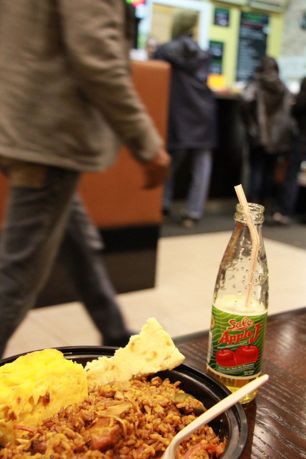 Chicken Pelau, Macaroni Pie, Sada roti and an Apple J