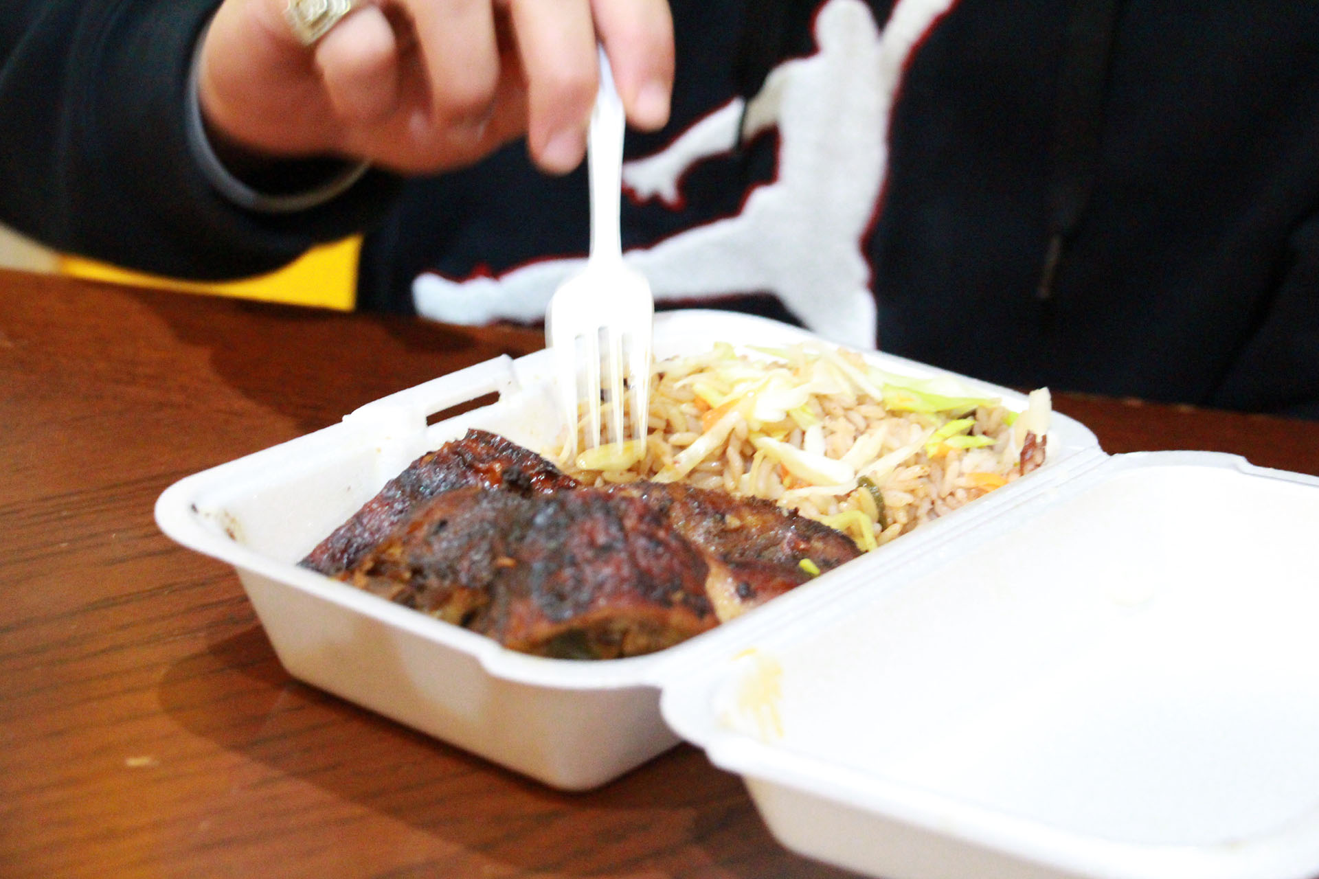 “I’ve eaten here five times in one day,” says one area resident, Devin Gorgis. “I never get sick of it.” Gorgis lives down the street, and has become a familiar face at Vineyard, where owner and head chef Michael Bailey doesn’t even have to take his order. “When I walk through the door, Michael sees me and says: jerk chicken, rice and peas. I know people that drive from Bradford for the Tuesday special. If the food is that good, you’re bound to come back.”