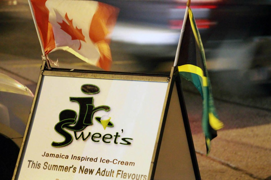 When Claude Fearon, owner of JR Sweet’s Jamaican Inspired Ice Cream, was growing up in Sandy Bay, Jamaica, Sunday night dessert always meant a slice of his mother’s freshly-baked black cake or carrot pudding, paired with a scoop of rum raisin ice cream. “That was our staple,” says Fearon. “Those are the things that I remember as a kid, and a lot of the people that walk in the door feel like they’re a kid again in Jamaica. It makes them feel good.” Fearon opened JR Sweet’s, in Toronto’s Oakwood-Vaughan neighborhood, in May 2014 with a vision to share a facet of his culture that was being overlooked. Toronto’s Jamaican community includes numerous places to feast on jerk chicken and curry goat, but nowhere else that specializes in the island’s unique ice-cream flavors. “In Jamaican culture, we have a lot of desserts and it runs pretty deep,” Fearon says. “I want to bring that to Toronto in a more detailed fashion.” Fearon works with different suppliers to offer a vast array of ice cream flavors, including Coconut Rum, and incredibly rich variations on classics like Stout, Mango, Soursop and Grapenut. There are a few unexpected twists like Tequila Lime and Kahlua, but the standard choice is nostalgic like Sunday nights in Sandy Bay: an outstanding Rum Raisin. Loaded with the dried fruit and fragrant like an aged barrel of Appleton, it’s unequivocal. Fearon isn’t stopping at hype of obtaining exotic delicacies, and sees JR Sweet’s as “progressive business.” He plans to change formulas to produce a more authentic Soursop flavor, and introduce nesberry, a tangy-sweet fruit from Jamaica. After closing for the season in September, JR Sweet’s re-opened on Father’s Day, with additional cakes, pastries and Jamrock-inspired frozen yogurt.